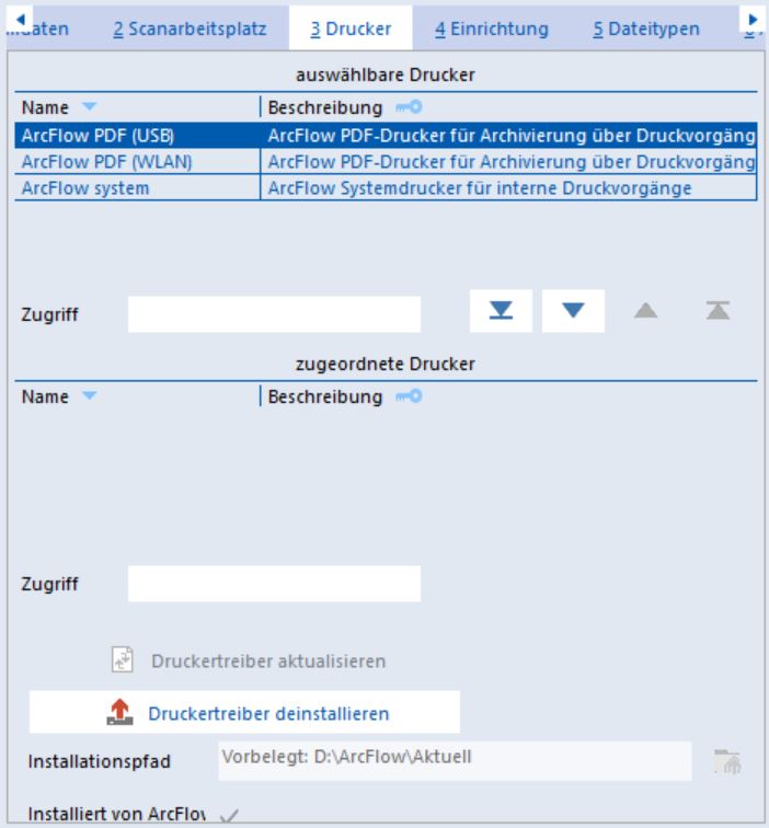 In diesem Bereich können die in den Importfunktionen definierten Drucker einem Arbeitsplatz zugewiesen werden.
